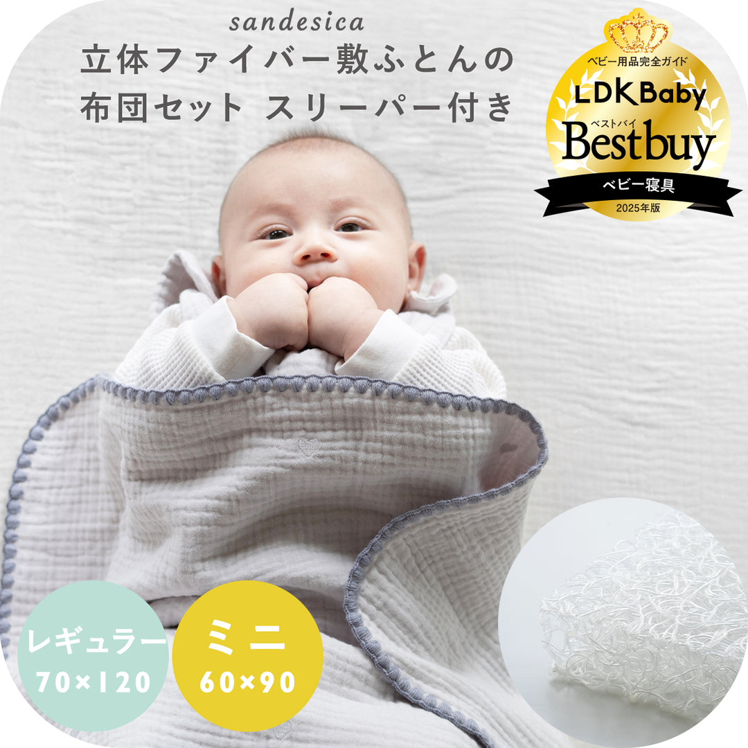 サンデシカは2004年の創業以来、"本当にいいものを作りたい"という思いで赤ちゃんとママの眠りに向き合ってきました。繊維の街名古屋から、全国を繋いで企画製造を行っています。